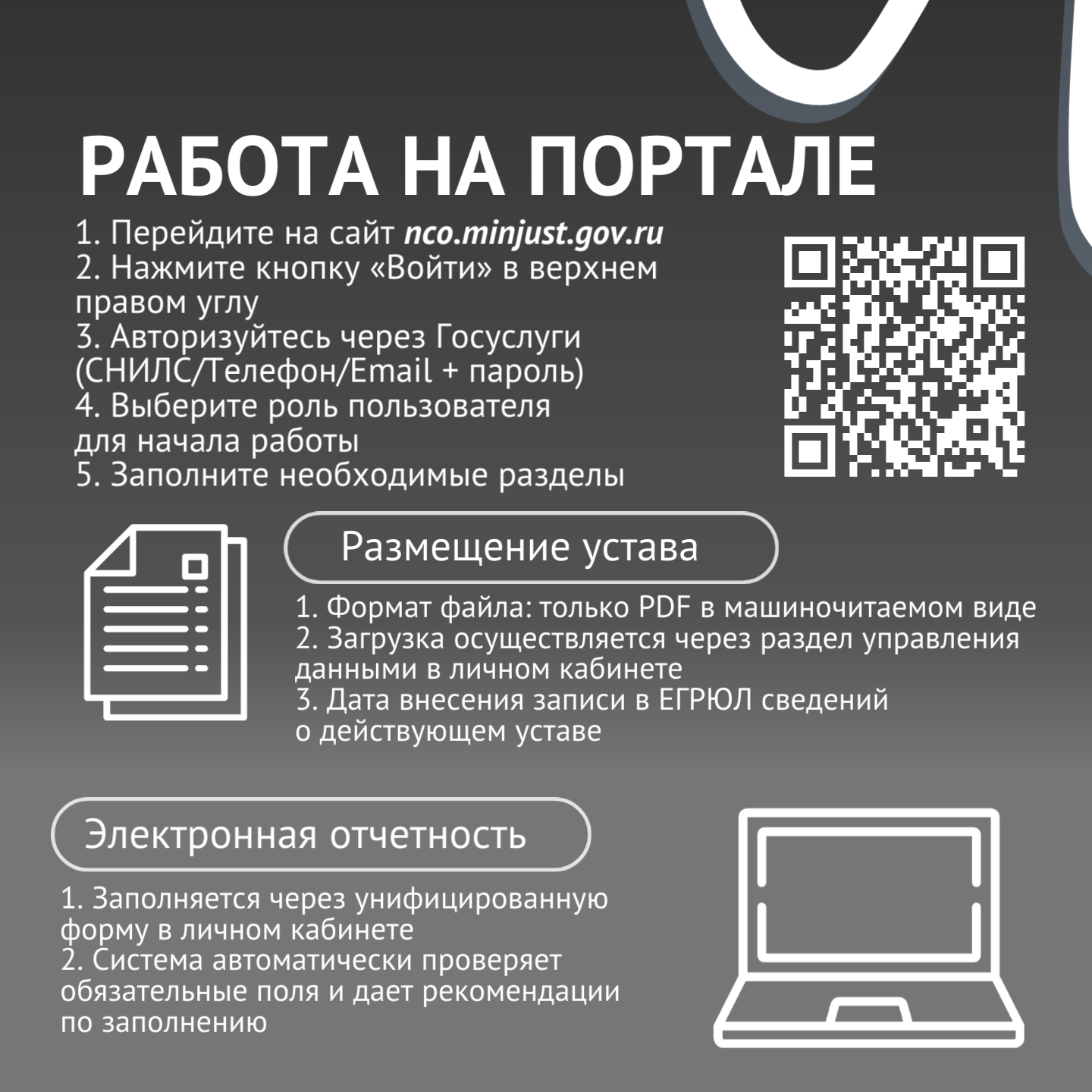 Личный кабинет НКО. Авторизация, отчетность, публикация устава.